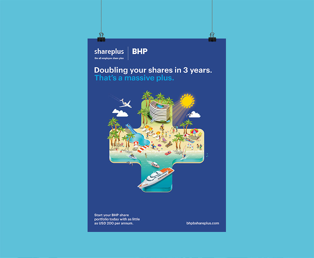 The brief was to inform Employees that your shares will be matched after three years, while also communicating the benefits of holding BHP Shares.